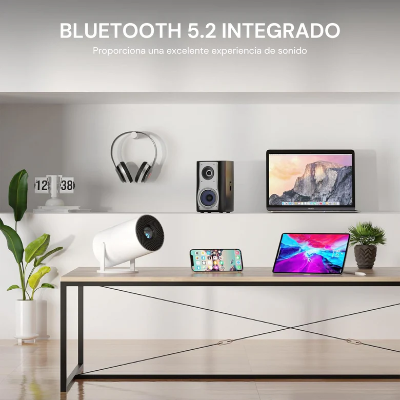 Vive la experiencia de una pantalla gigante con colores vibrantes y una nitidez impresionante. Disfruta de un audio potente y conecta tu proyector con cualquier dispositivo: móvil, consola, TV y más.